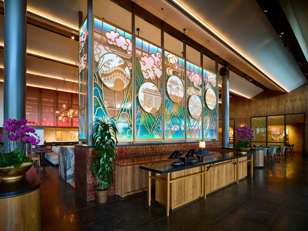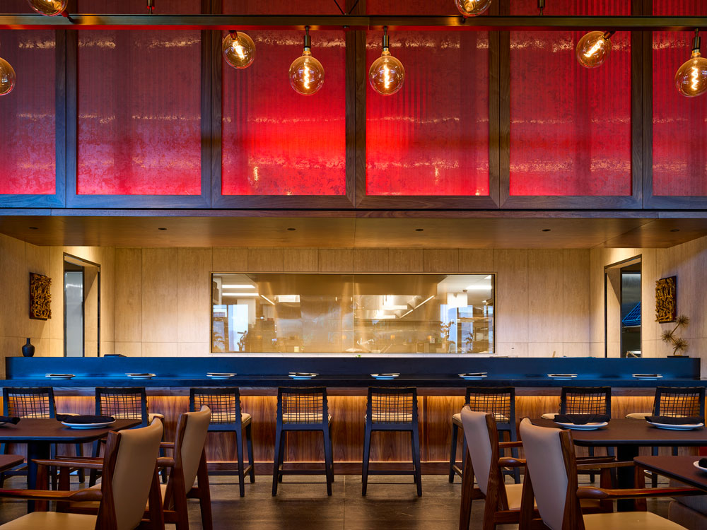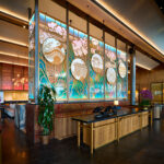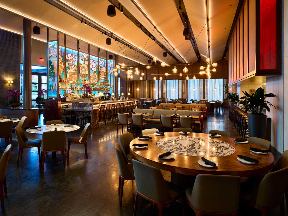 Revitalizing the brand’s flagship, this lighting design balances family legacy with a modern community vision by integrating traditional East Asian inspiration into contemporary architecture. The scheme features cove and accent lighting embedded within a “folding-fan” V-shaped ceiling, grazing light that highlights a historic stained-glass mural, and an open kitchen soffit that glows like a lantern. High-efficiency LEDs are used throughout to achieve a warm, traditional atmosphere with remarkably low energy consumption.